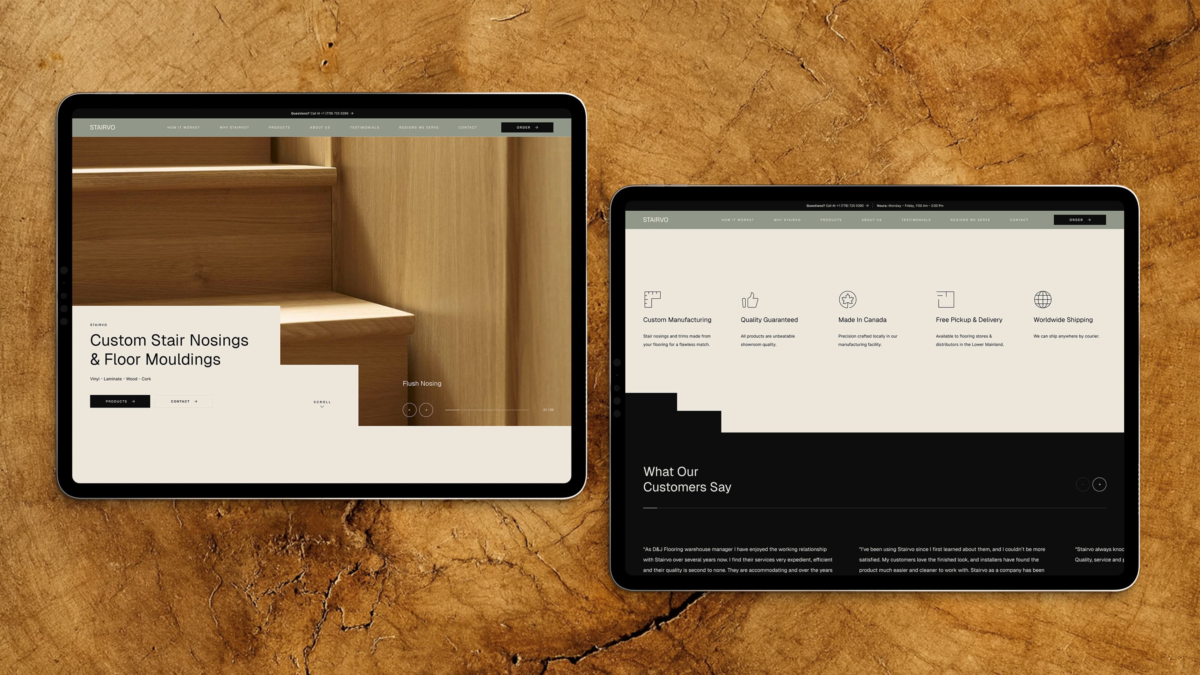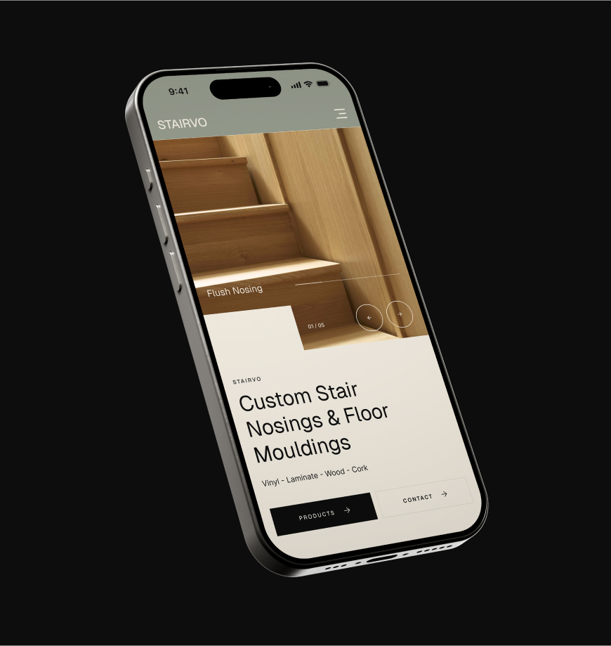 Stairvo produces high-quality, custom stair nosings designed to perfectly match your luxury vinyl, laminate or engineered wood flooring. Their manufacturing process ensures durability and visual harmony between stairs and floors.